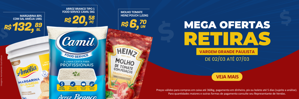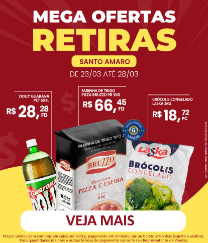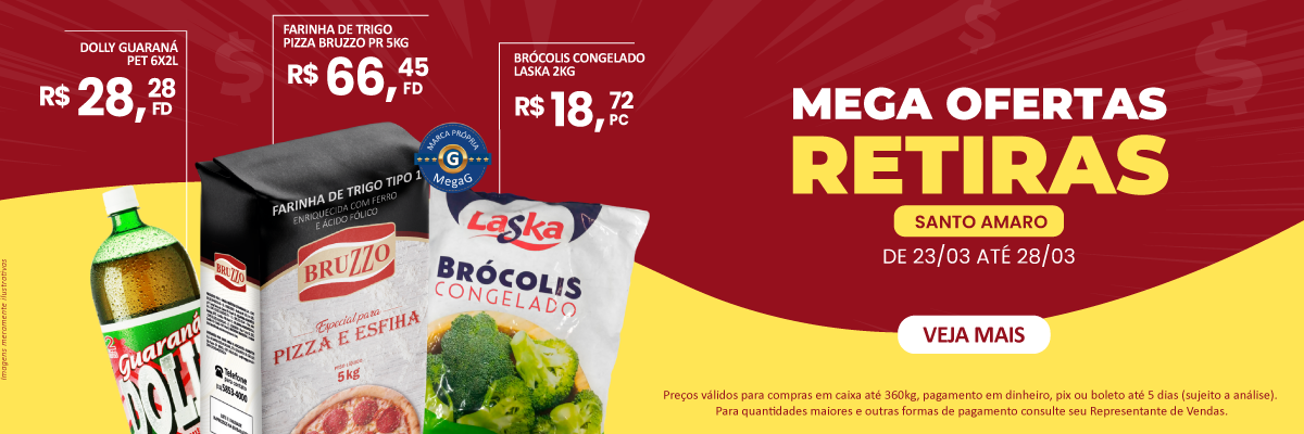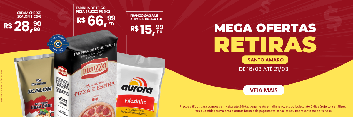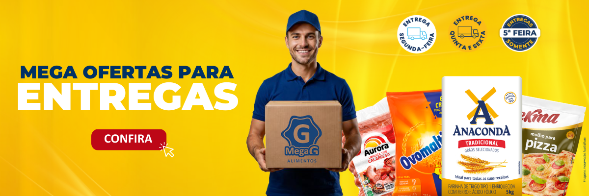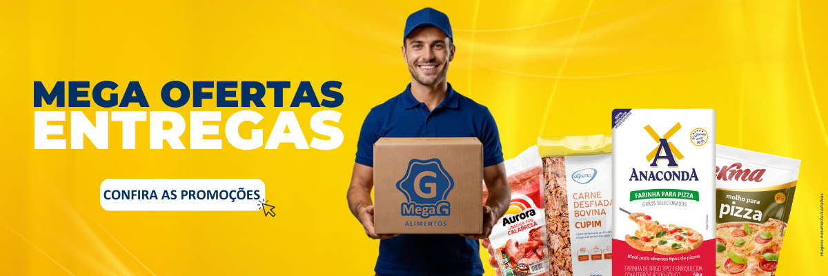 Empresa dedicada a atender necessidades de consumo de pizzarias, restaurantes, churrascarias, padarias, lanchonetes, pastelarias, bares e similares, mercados, cozinhas industriais e hotéis. A MegaG Alimentos atende com qualidade e competência, fornecendo mais de 1.800 produtos das marcas mais conceituadas do mercado, além de uma linha especial de marcas próprias para o Food Service.