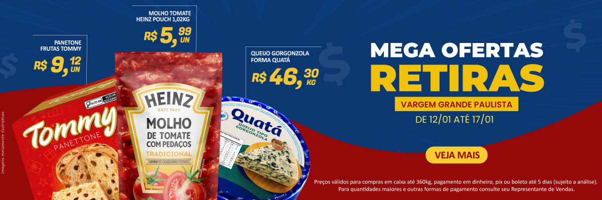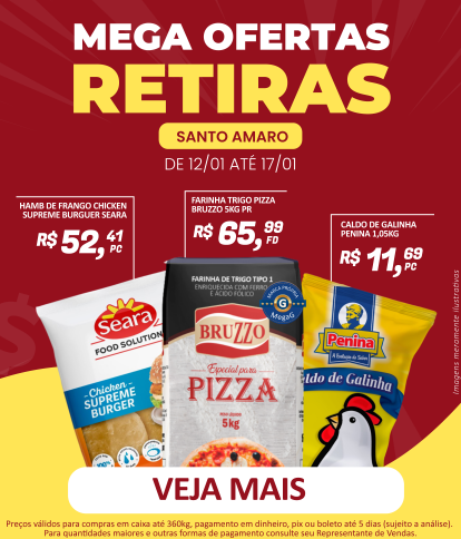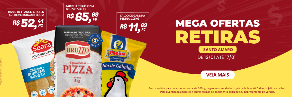 Empresa dedicada a atender necessidades de consumo de pizzarias, restaurantes, churrascarias, padarias, lanchonetes, pastelarias, bares e similares, mercados, cozinhas industriais e hotéis. A MegaG Alimentos atende com qualidade e competência, fornecendo mais de 1.800 produtos das marcas mais conceituadas do mercado, além de uma linha especial de marcas próprias para o Food Service.