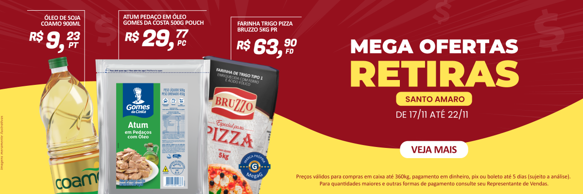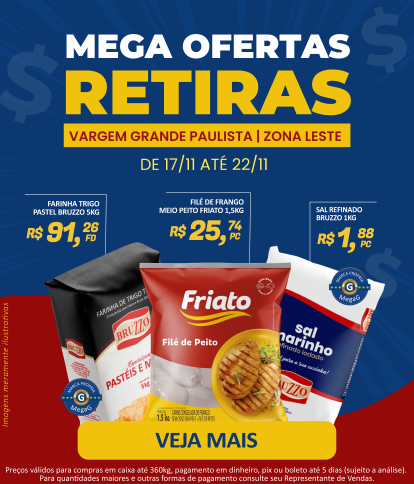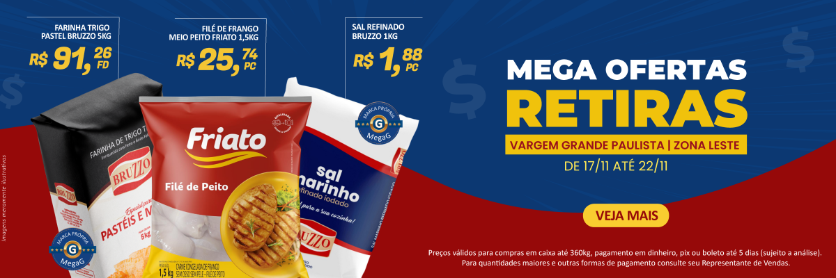 Empresa dedicada a atender necessidades de consumo de pizzarias, restaurantes, churrascarias, padarias, lanchonetes, pastelarias, bares e similares, mercados, cozinhas industriais e hotéis. A MegaG Alimentos atende com qualidade e competência, fornecendo mais de 1.800 produtos das marcas mais conceituadas do mercado, além de uma linha especial de marcas próprias para o Food Service.