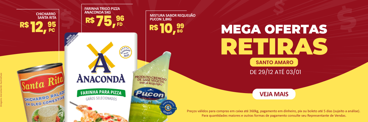 Empresa dedicada a atender necessidades de consumo de pizzarias, restaurantes, churrascarias, padarias, lanchonetes, pastelarias, bares e similares, mercados, cozinhas industriais e hotéis. A MegaG Alimentos atende com qualidade e competência, fornecendo mais de 1.800 produtos das marcas mais conceituadas do mercado, além de uma linha especial de marcas próprias para o Food Service.