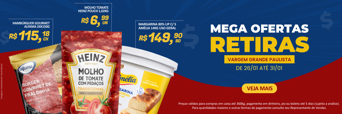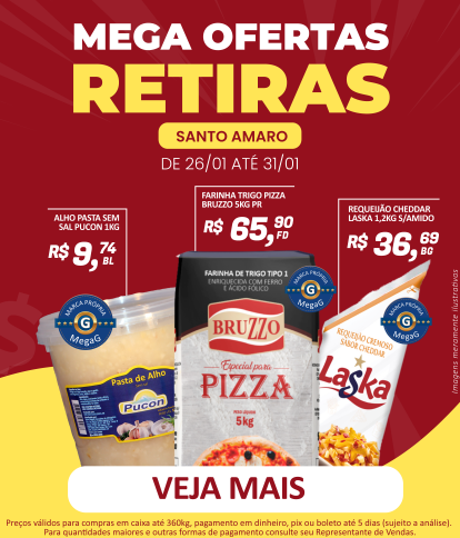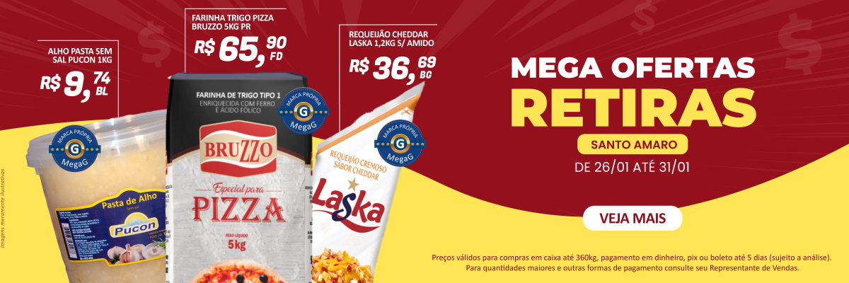 Empresa dedicada a atender necessidades de consumo de pizzarias, restaurantes, churrascarias, padarias, lanchonetes, pastelarias, bares e similares, mercados, cozinhas industriais e hotéis. A MegaG Alimentos atende com qualidade e competência, fornecendo mais de 1.800 produtos das marcas mais conceituadas do mercado, além de uma linha especial de marcas próprias para o Food Service.