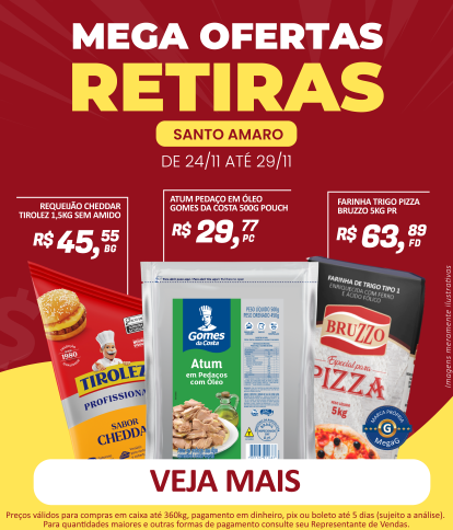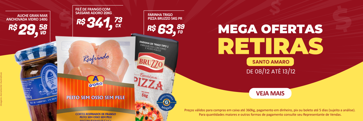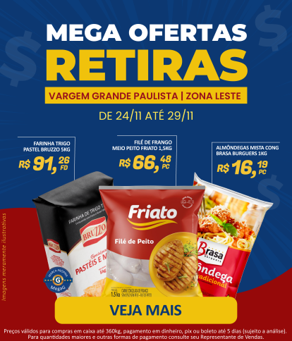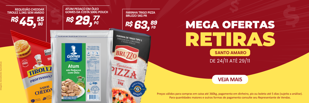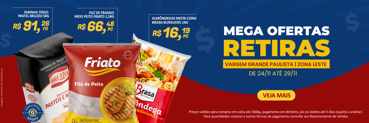 Empresa dedicada a atender necessidades de consumo de pizzarias, restaurantes, churrascarias, padarias, lanchonetes, pastelarias, bares e similares, mercados, cozinhas industriais e hotéis. A MegaG Alimentos atende com qualidade e competência, fornecendo mais de 1.800 produtos das marcas mais conceituadas do mercado, além de uma linha especial de marcas próprias para o Food Service.