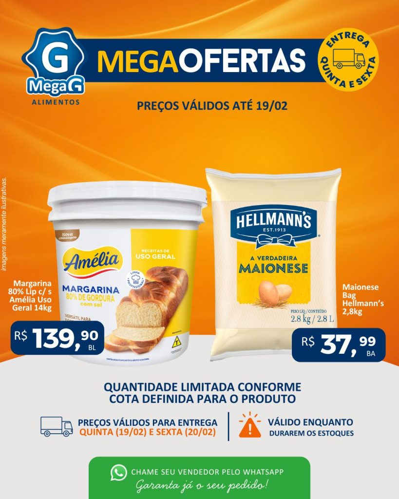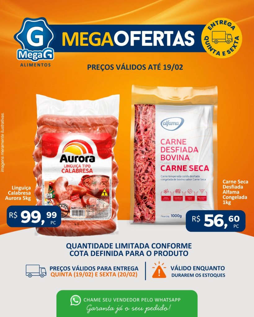 Preços válidos até 19/02 com entregas nos dias 19/02 e 20/02. Quantidade limitada conforme cota determinada para o produto.