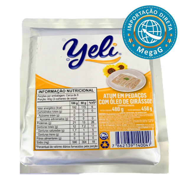 / Atum Pedaço Em Óleo de Girassol Yeli 480g Pouch Importado